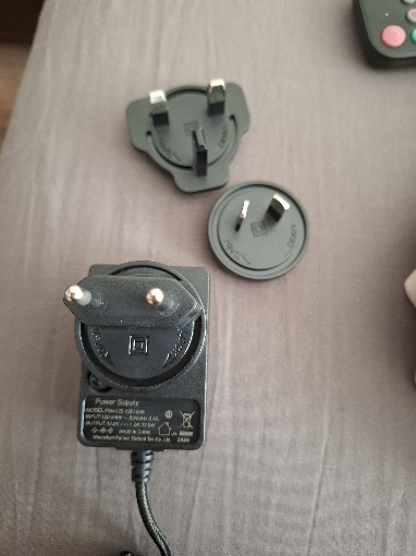 There are spare plugs for different sockets and a stock of trash bags. Also, another grate with a larger mesh. Very large.