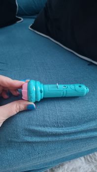 It works perfectly. it has batteries inside. it’s very very small, about 12 cm long!