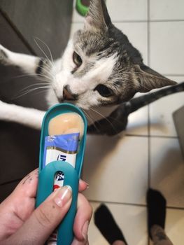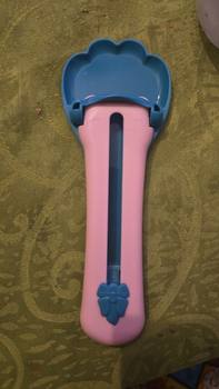 You can press your thumb on the button and put it forward slowly, then the food in the strip will be squeezed clean, and it can prevent waste. Featuring a groove top with a curved design, this product is convenient and smooth in edge, which is odor-free and safe for pet use. Made of PP plastic material, safe, wear-resistant, and long-lasting. It is suitable for feeding snacks to your pets!