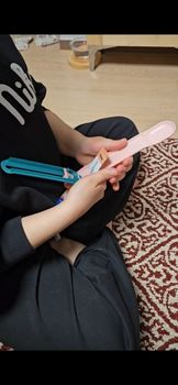 It is very simple but practical, in the sample image it is more lilac but in physical it is rather blue but it still looks very beautiful, if it served me because it always dirty my hands