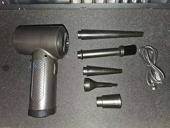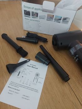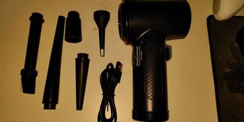 Excellent laptop blower, useful for cleaning in limited spaces, I also use it to dry the dog after the bath. Excellent materials, several vents and charging cable included