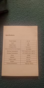The equipment is small in size but blows with power. It has 3 levels of blowing. The USB cable is damaged, possibly in transport, as the box is hit. I value it with 5 stars since it is not a problem of the team as such. I hope the seller has a detail with this.