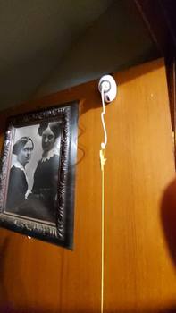 Should be hooked onto a door. The metal hanger is not strong enough and bends quite easily. Has different modes and moves in all kinds of ways.