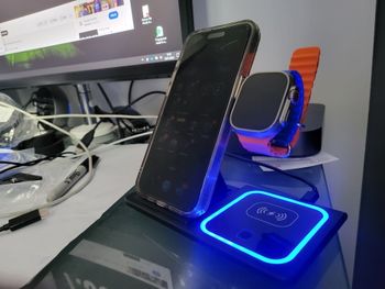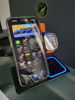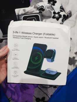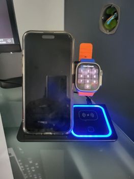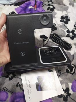 I was surprised by the charger, it is not very big and charges the mobile, Watch and airpods, the material is plastic but it looks resistant.