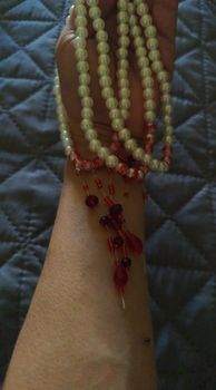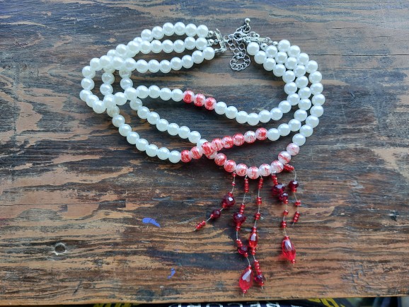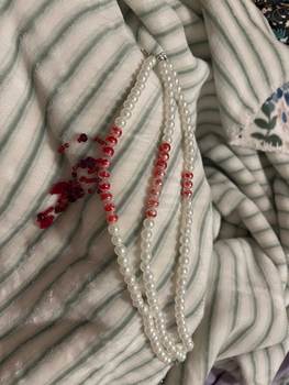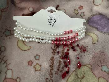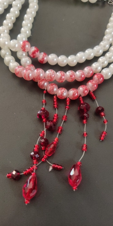 The Gothic Dripping Blood Pearl Necklace is handcrafted with resin plastic imitation pearls and glass crystal beads to achieve a good texture and gloss, while remaining affordable. The quality is great and the necklace is stunning. It is handmade and looks like the picture. The pearls move fluidly with neck movements. The necklace is easy to put on and take off as it is made of stretchy elastic material. The elastic allows the necklace to fit around the neck without any hassle, flexible.
