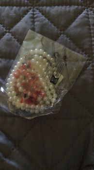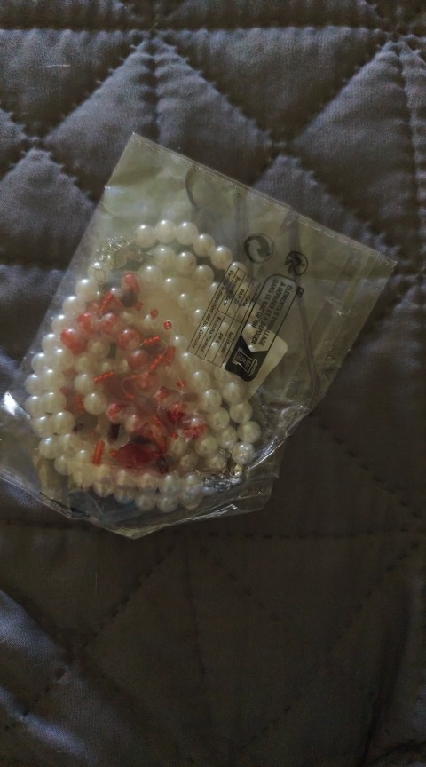 Beautiful and looks exactly as pictured on. Pearls are light weight and it’s very cheap if you hold it but when you wear it, It looks great. Perfect accessory for halloween