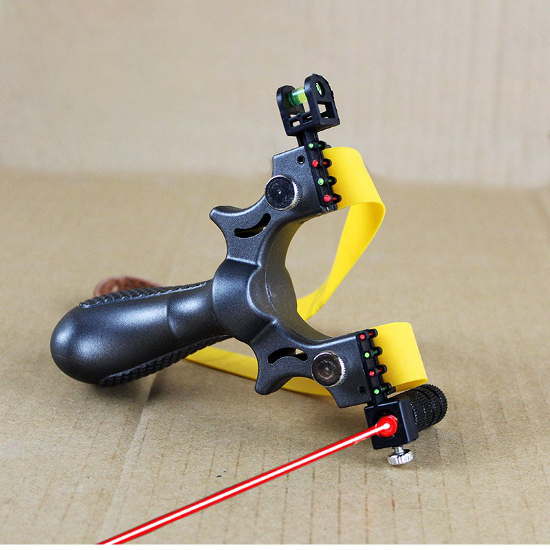 The slingshot handle has a non-slip design, and the curved handle makes the hand feel more comfortable. The slingshot is equipped with a laser to assist you in aiming and shooting!