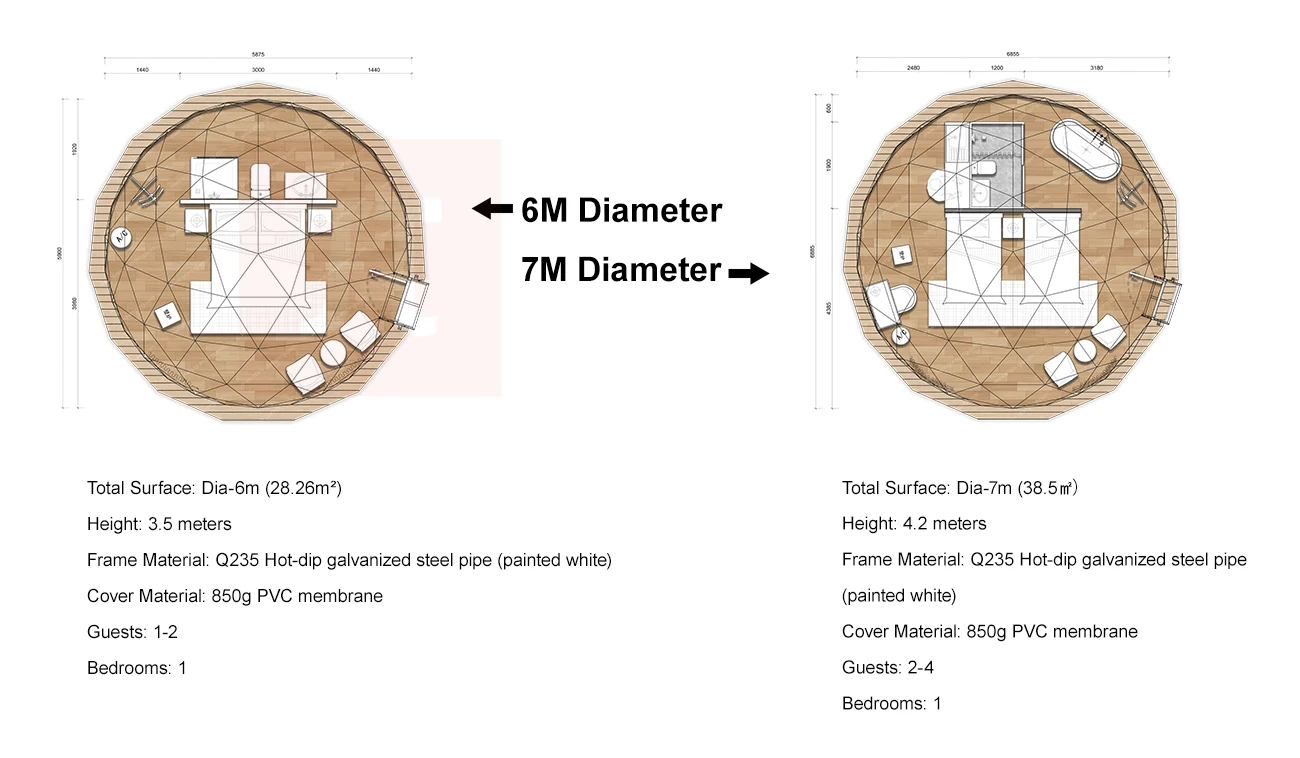 1. The dome shape provides an interior space without pillars, allowing for greater freedom of standing or movement, making it suitable for multiple people to share, and people can usually walk upright, which is more comfortable.