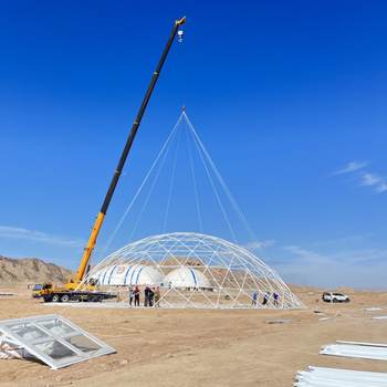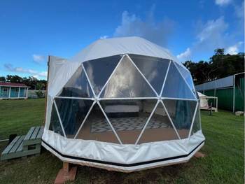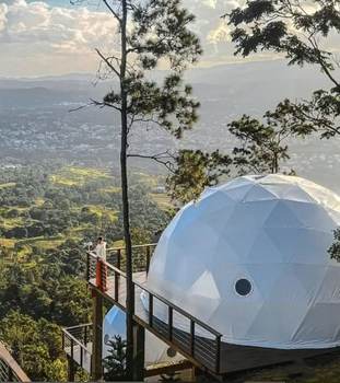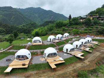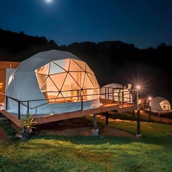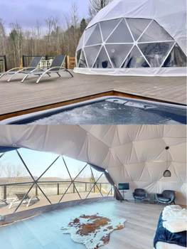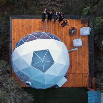 The Luxury Glamping Geodesic Dome Tent is a premium outdoor retreat that seamlessly blends modern comfort with the natural beauty of the outdoors. Designed with a sturdy, weather-resistant frame and panoramic windows, this dome offers a spacious, stylish, and eco-friendly shelter for luxury camping. Ideal for resorts, retreats, or private getaways, it features customizable interiors, excellent ventilation, and all-season durability. Whether under the stars or surrounded by mountains, the Luxury Glamping Geodesic Dome Tent provides an unforgettable glamping experience in comfort and style!