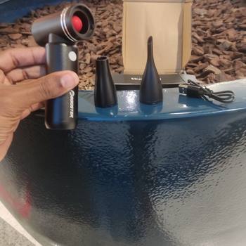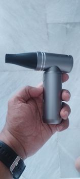 The delivery seems to come soon .. It is small and the weight is also moderate. From the first stage, there are two, three, and four-stage Terbo. It sounds like a jet engine. The handle is very, uh... It might slip, so it's a shame it's anti-skid. And be able to hang or tie on your neck or belt I think it would have been better to have made a ring. There are two adapters, according to the line buyers. The adapter in the small hall is caused by a backwind It seems unnecessary or an important problem to be improved. I bought well at a low price Personal rating is 4 out of 5 stars.