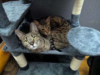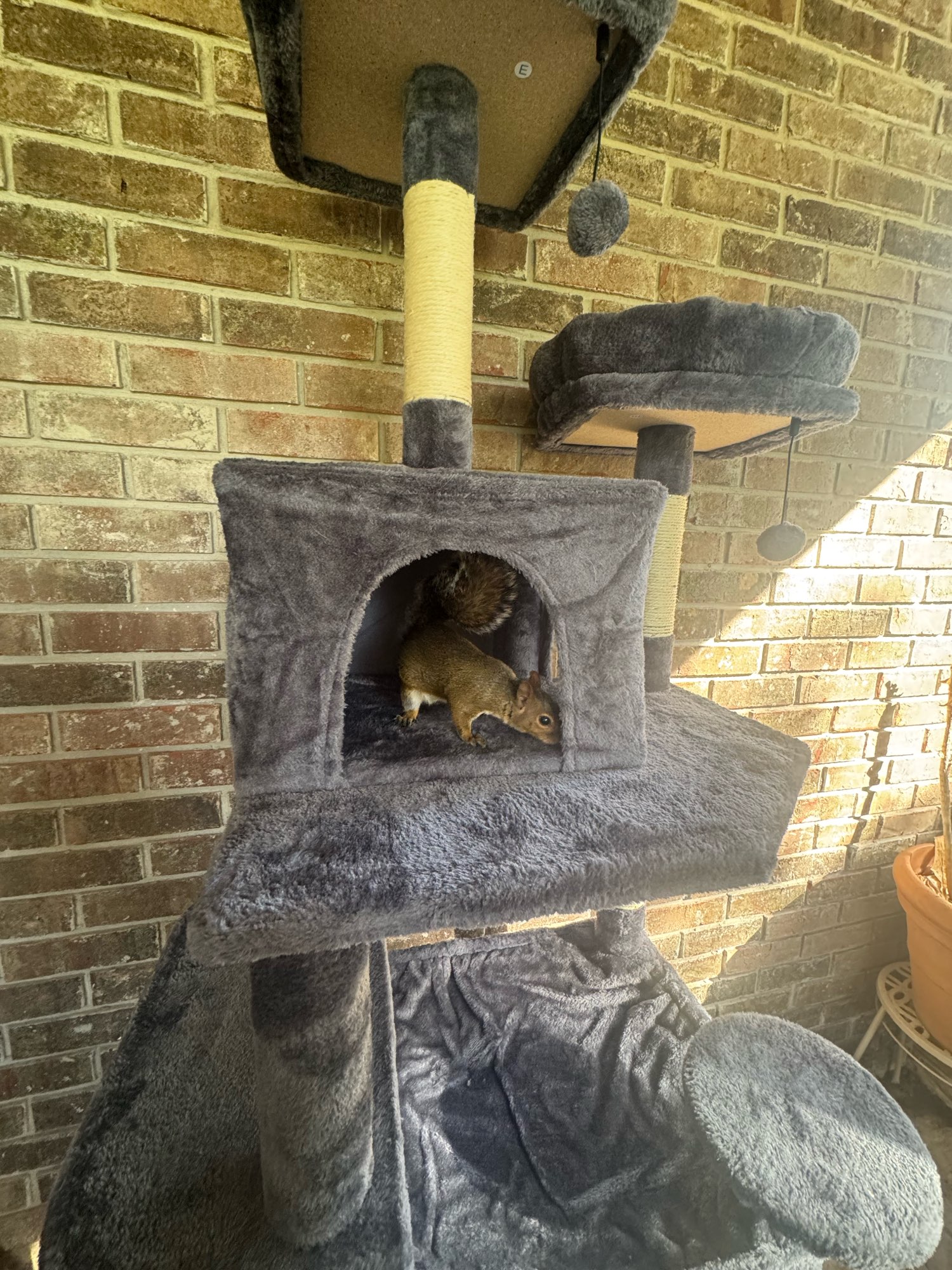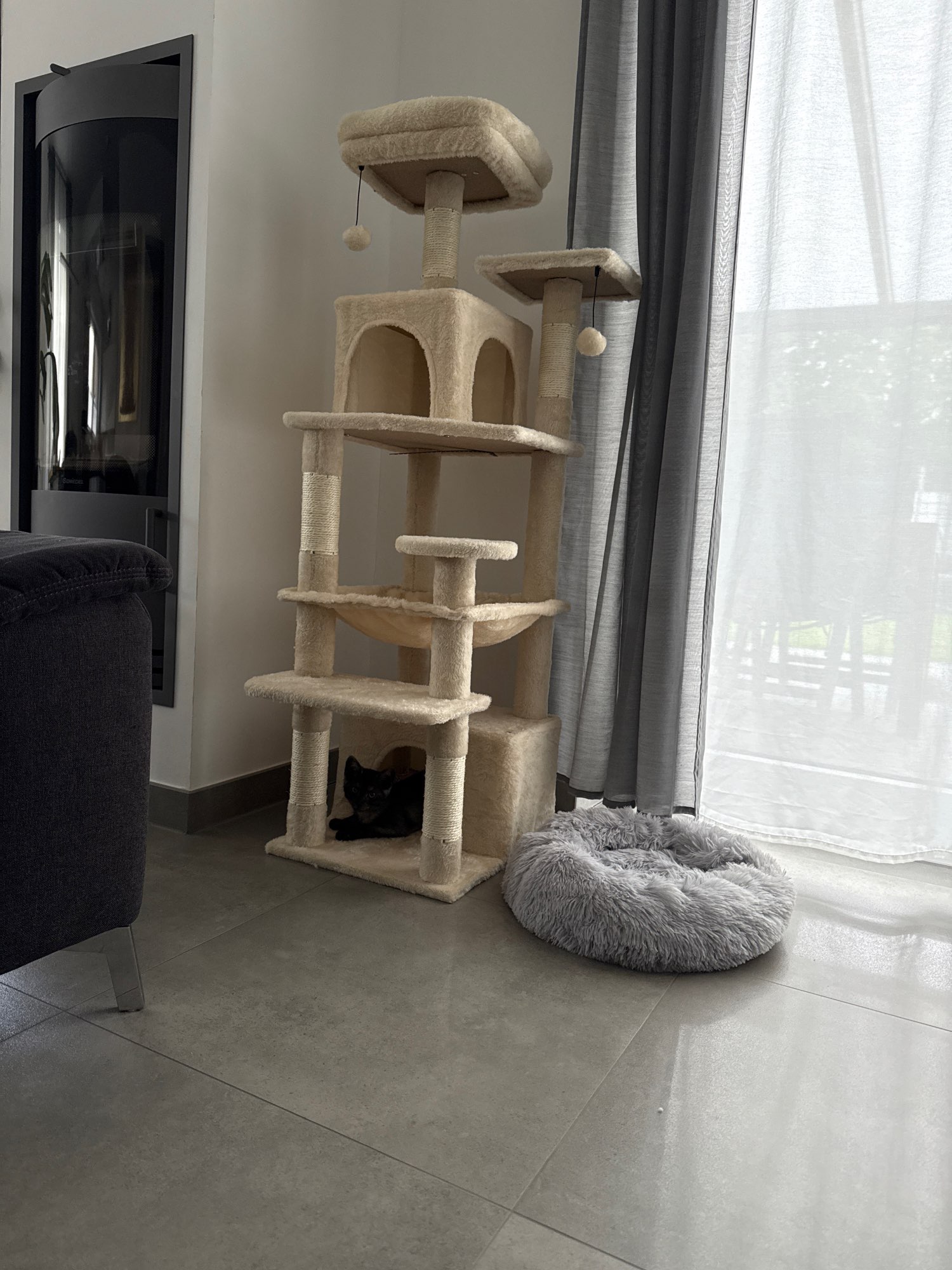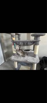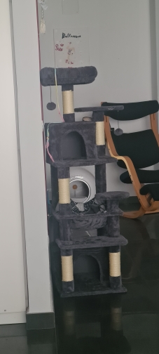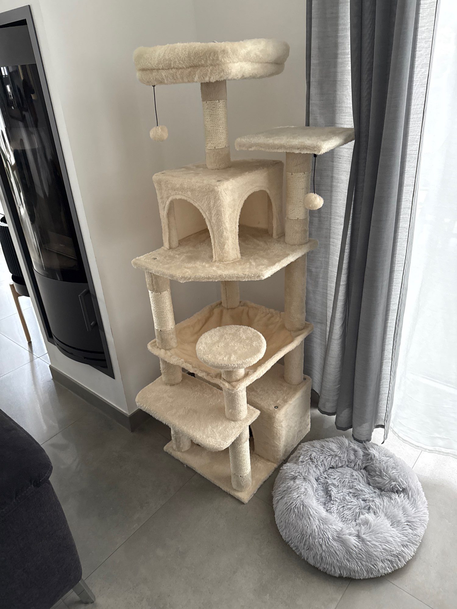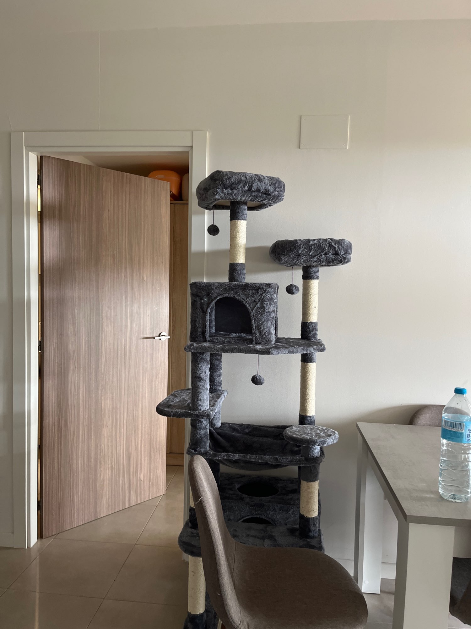 I just moved into a new house. I'm still unpacking and getting things set up. I had to buy a new cat tree since i have adopted another cat, making the total 5 cats. This tree has enough space for all 5 cats. I am very pleased with this purchase.