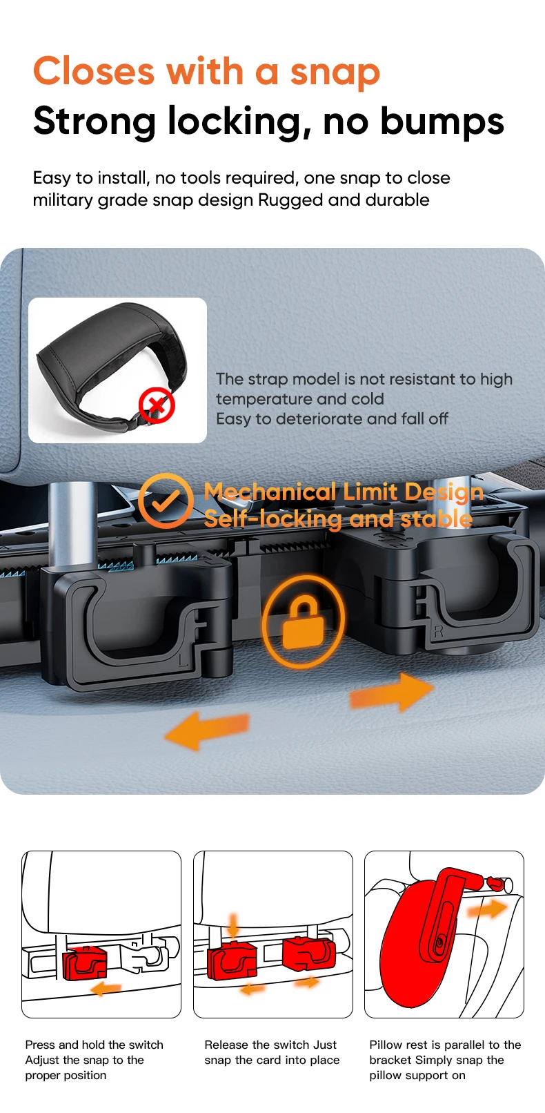 【Dual Hook Functionality】Equipped with dual hooks for versatile use, enhancing stability and adaptability to different car seat designs.