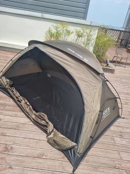 It's a two-person tent, but it's heavier than expected. It's better to use with two people rather than alone. I bought the whole set separately, and it has a nice color match. I recommend it.