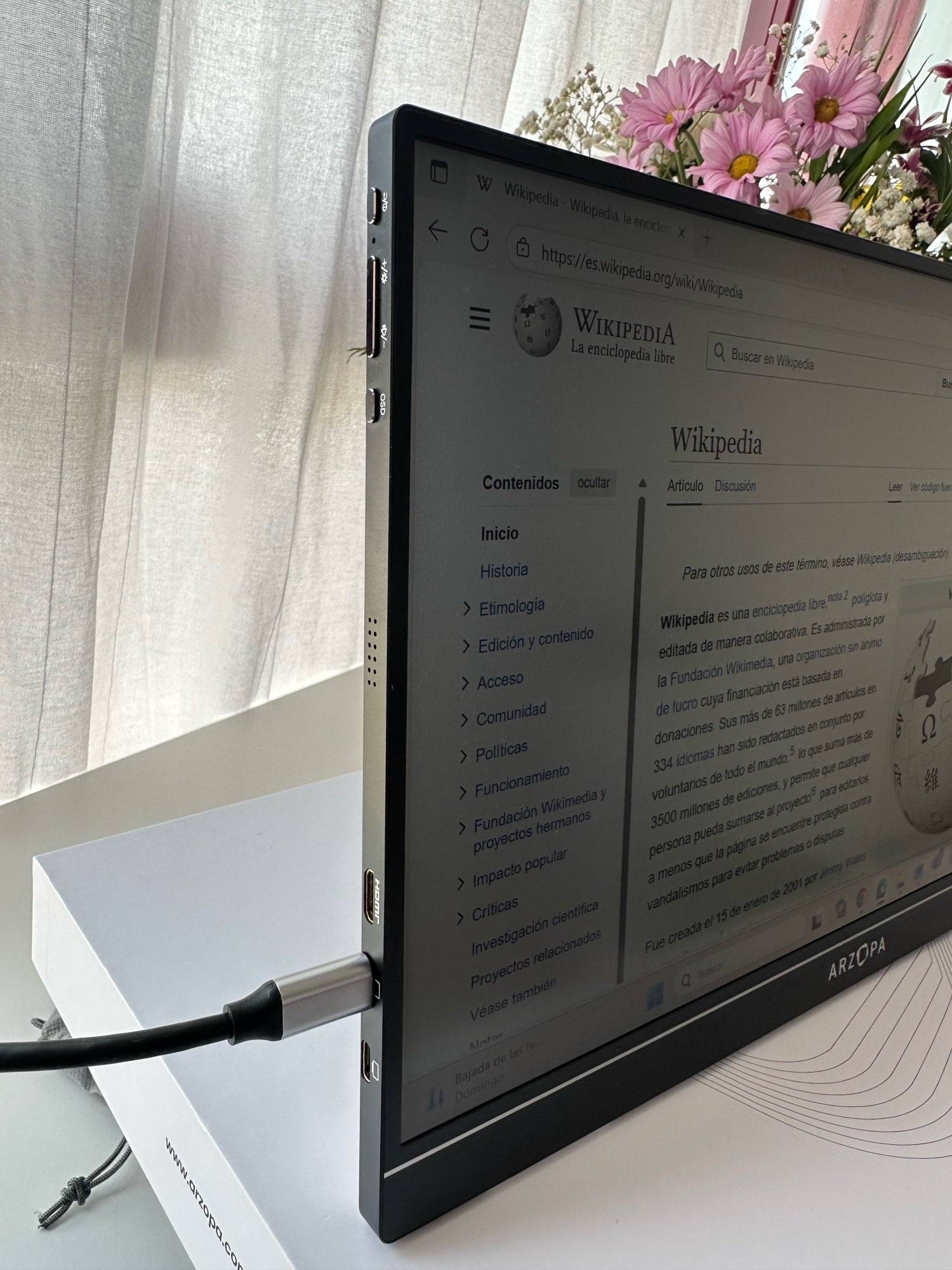 Extra flat monitor to place anywhere, the image is quite good, what lacks is the sound quality which is not very good. Regarding the power supply, it's best to connect it to a light since not all devices provide enough power for it to work well. If connected to a device that doesn't provide enough power, the screen turns on and off continuously. It's best to connect it to a light 100%.