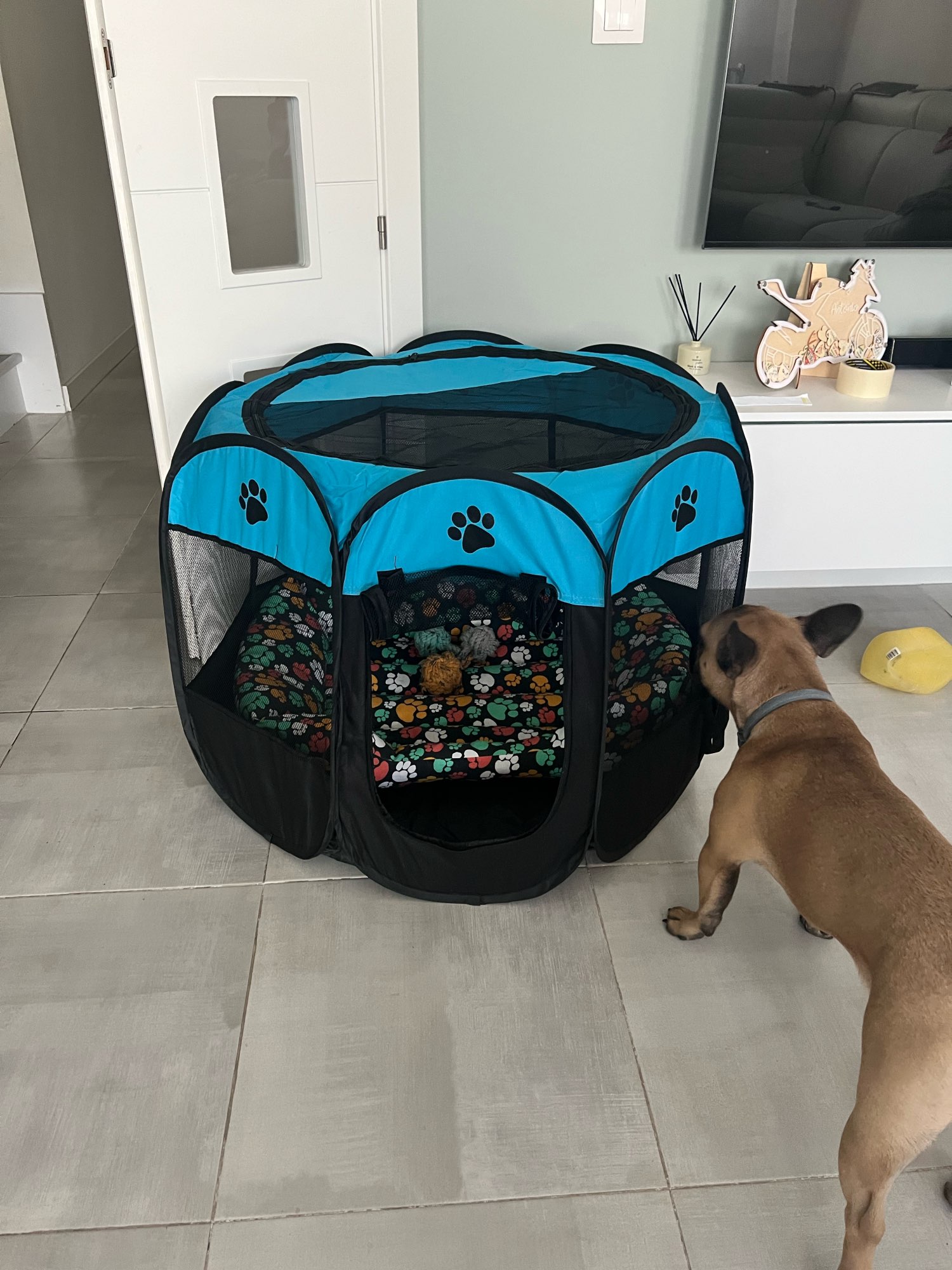 3. Rolling door design. Convenient for pets to enter and exit the tent freely