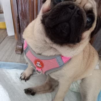 Came to Belarus ahead of the announced date by 8 days. In general, the harness is not poorly sewn, the threads do not stick out, the material is dense. I took a pug (9 kg), the size M fit, but the harnesses were moved to the smallest size. In general the seller and the product is recommended