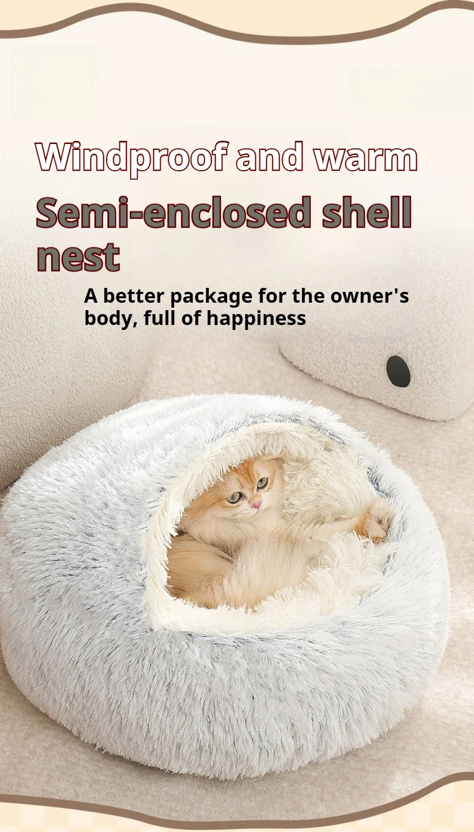 【4】 Scientific semi enclosed design, imitating natural caves, providing pets with a sense of peace of mind when wrapped