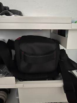 In a pocket on the front of the bag, you can put the battery, memory card, charger, and other accessories.