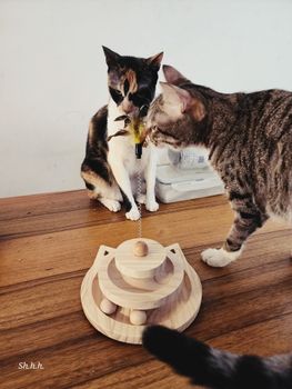 Solid wood cat turntable, cat-type design, cats love it more. You can tease cat sticks with suction cups, or tease cat sticks more solid. Anti-slip mat is stable and non-slip, should not slip, strong and durable, edge polished round to prevent bumps. Easy removal and installation, convenient to collect, happy to amuse the cat so that the cat can play all the fun, the owner is more worry-free!